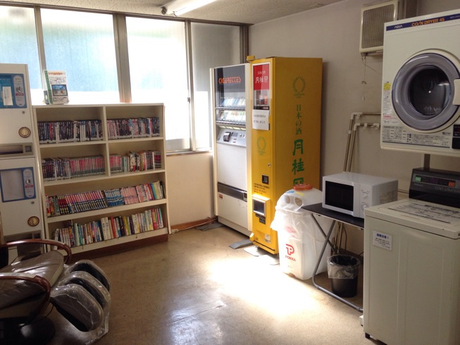 二階という名の一階の奥に洗濯機や自販機、本棚。