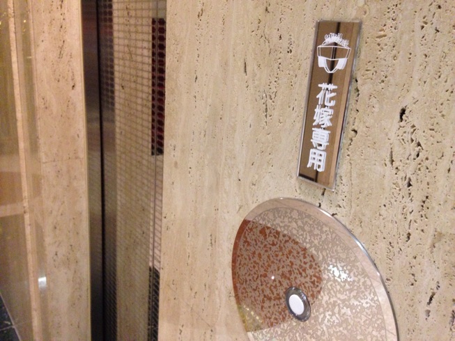 花嫁専用のエレベーターがある。花婿は普通のに乗れ。