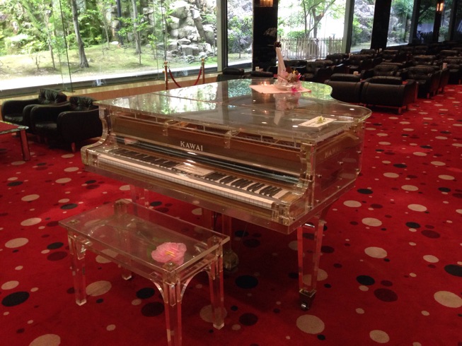 ロビーにカワイのクリスタルピアノがあるけど危険だから触ってはいけない。