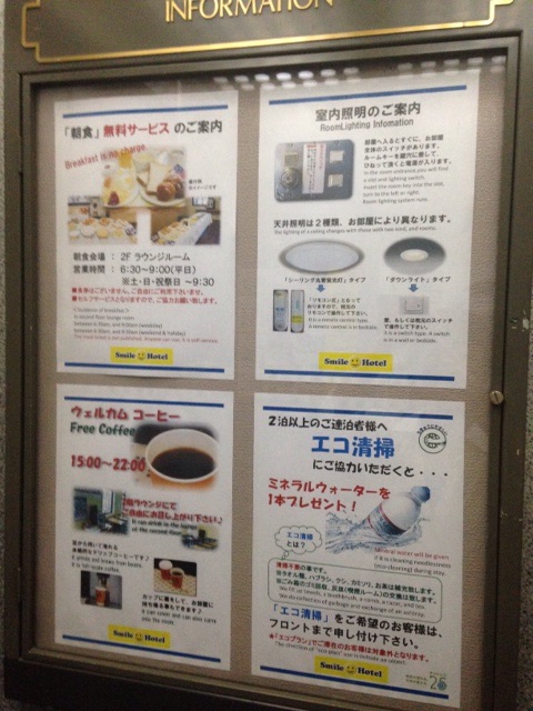 スマイルホテルだけあってフロントの人はみなスマイルで、手際は決して良くなかったけれど、スマイルだったからなんとなく許せるような、そうでもないような感じだった。