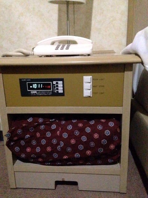 サイドテーブルの下に座布団みたいなものがあって、何だろうと思ったら毛布だった。