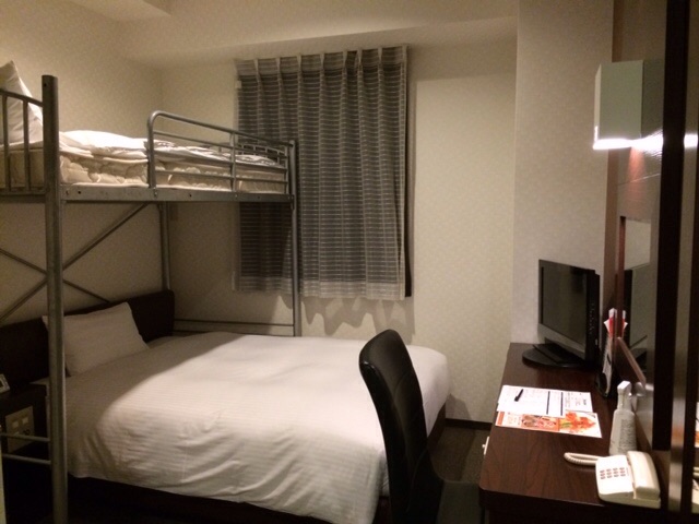 部屋にはロフトベッドがあったが、気をつけて、ちゃんと屈まないとロフトに頭をぶつける。