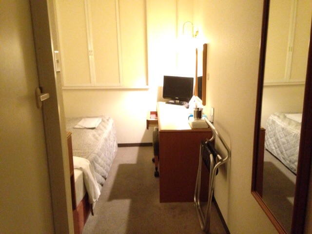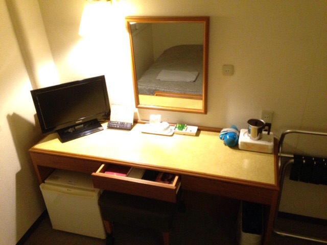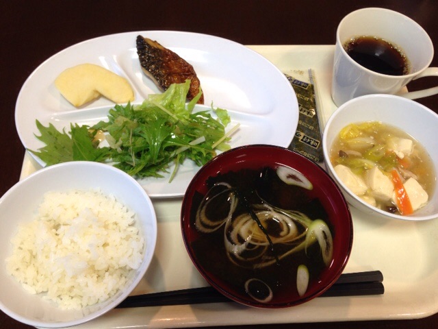 朝食無料。おかず少ないけど中華丼の具みたいなの美味しかった。パンはないのかなあと思ったらコーヒーメーカーの陰にバターロールと食パンが隠れてたけど、ジャムやバターの類は置いてないみたいだった。