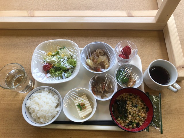 無料朝食は現在コロナ対策で小分けのスタイル。わりと和。