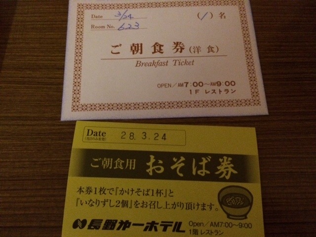 朝食は洋食か和食を選ぶが、さらにかけそばといなりずし2個を頼むことができる。かけそばは美味しかった。