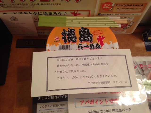 そして冷蔵庫の飲み物の他に、徳島ラーメンのカップ麺まで置いてあった。