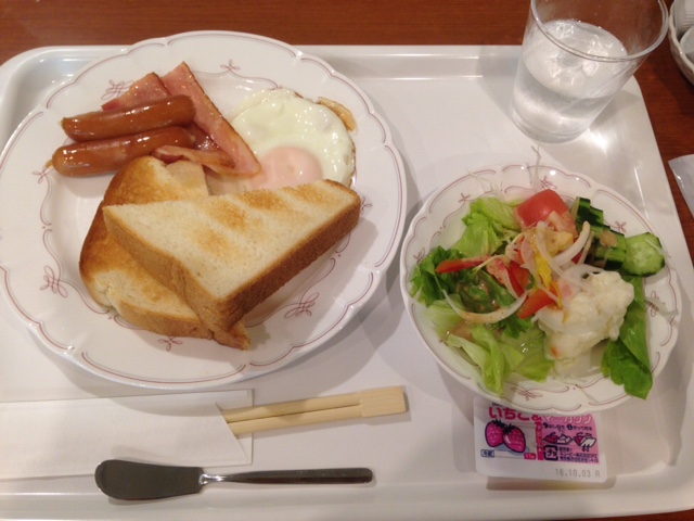 朝食は和洋選ぶタイプ。フロントでもらうカードには7時からと書いてあるけど、6時半からやってます。