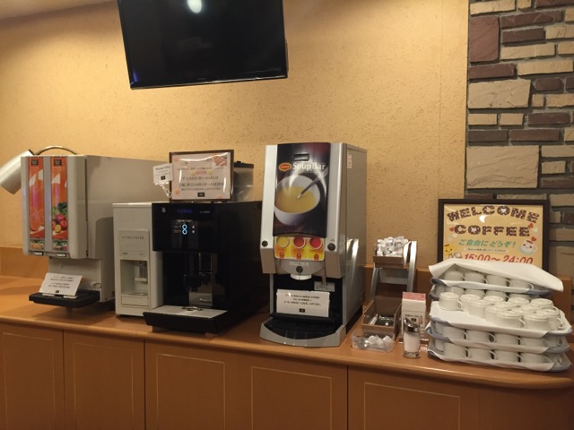 ウェルカムドリンク、コーヒーは24時までいただけます。