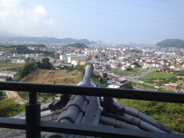 天守閣に展望スペースあり。望遠鏡も置いてある。