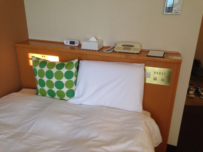 ベッドは低反発?なのかな。寝るとじんわり沈み込んでいく感じで面白い。
