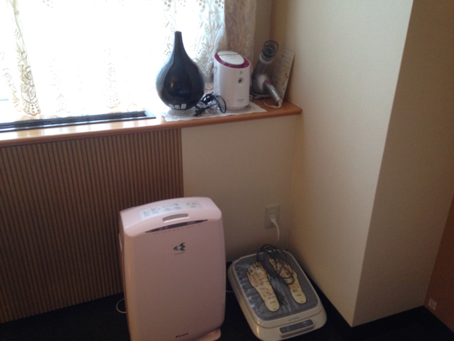 部屋にはスチーマーナノケアとか空気清浄機とか足ツボマッサージとか、マッサージチェアーが置いてある部屋もあるみたい。豪華。