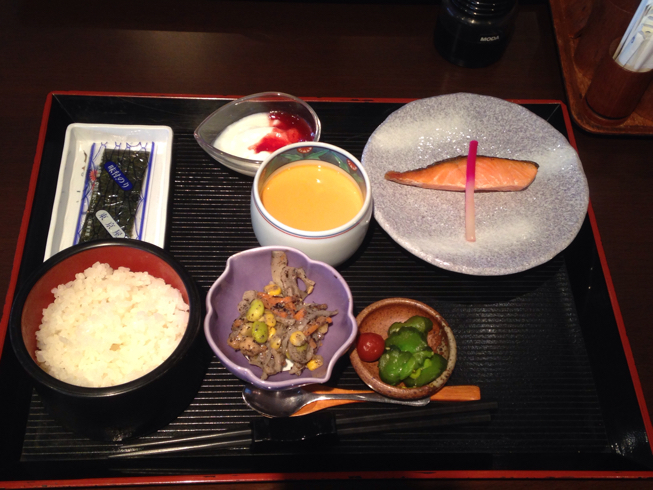朝食は和洋選べそうな感じだったけど、大人数だったからか自動的に和食。飲み物はいろいろあった。