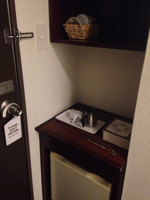 部屋のドア入ってすぐのくぼみにお茶コーナーがある。