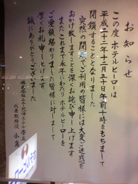 帯広のホテル、ヒーロー。