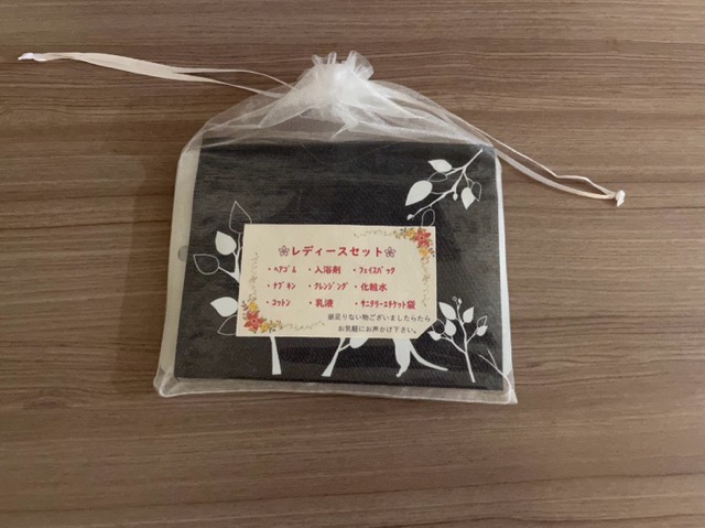 コロナ対策ということで、部屋のアメニティがプラスチックケースに入れられていた。そしてレディースセットも置いてある。