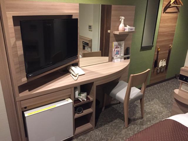 オートロックでないので注意。テレビがおしゃれな感じで置かれてある。
