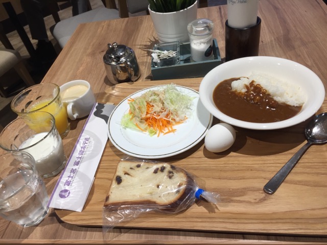 朝食は無料のバイキング。野菜の盛りが勢い良い。