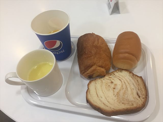 朝食は無料なんだがパンしか無い。あとスープバーとコーヒー。
