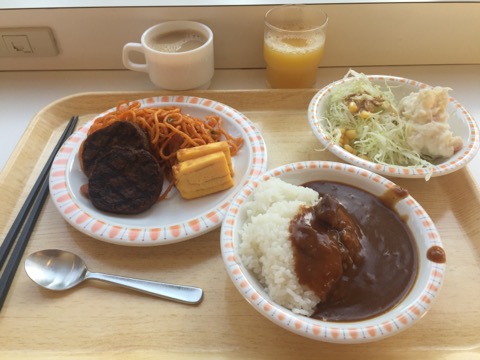 朝食はバイキング、ナポリタンとカレーが嬉しい。