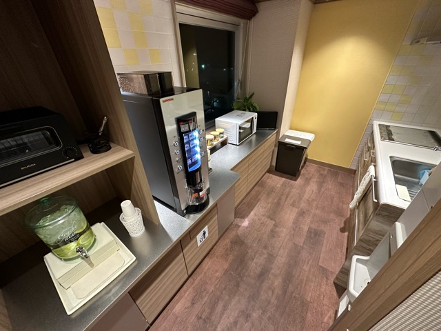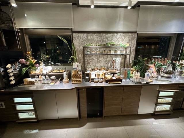 コーヒーや紅茶、レモンウォーターは自由に飲める。