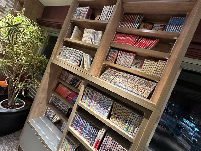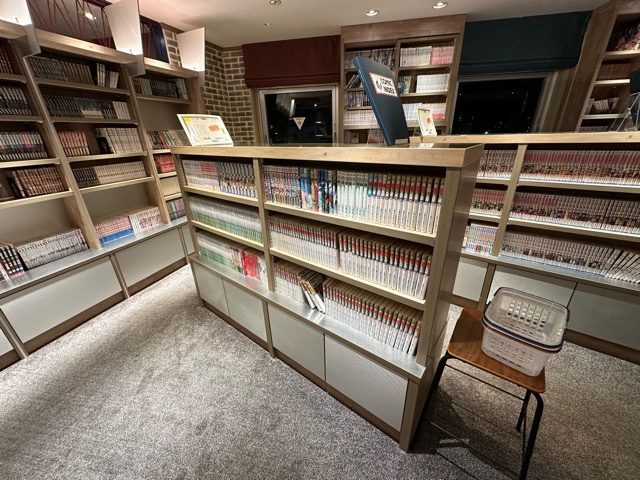 漫画がめちゃくちゃある。ラーメン食べられる。