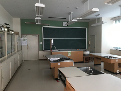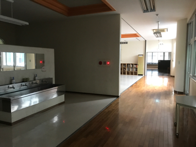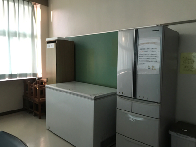 洗濯機や、元家庭科室の調理場がある。持ち込みでご飯作ったりしても良さそう。そこに冷蔵庫もある。