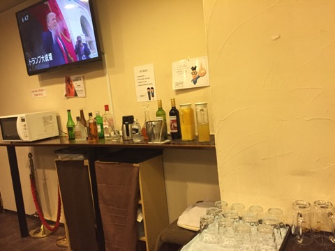 ウェルカムドリンクはセルフサービスだけど一人一杯まで。