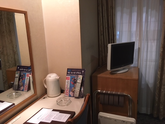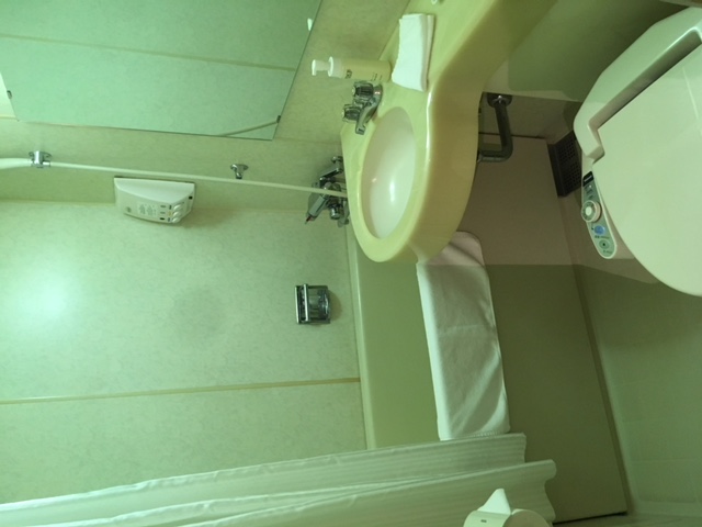 客室は、そんなに新しくはないが、翌日はシャワーの温度設定ができる新しいタイプなので、快適。テレビは固定されている。