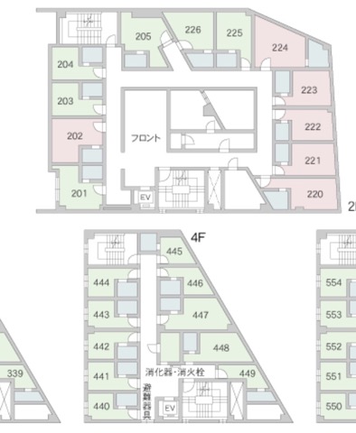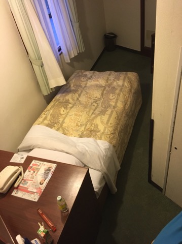 ホテルの部屋の大きさ、形などはそれぞれで大きく違っている。とても狭い部屋はほぼベッドのみ。机もベッドの頭の上にあり、椅子は置けない。