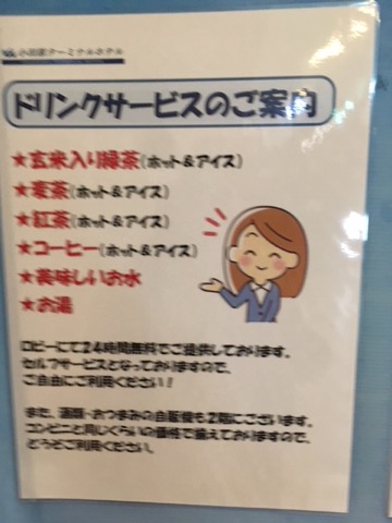 歯ブラシ以外のアメニティはすべてフロントにあり、電子レンジや24時間いつでももらえるドリンクサービスなどがある。