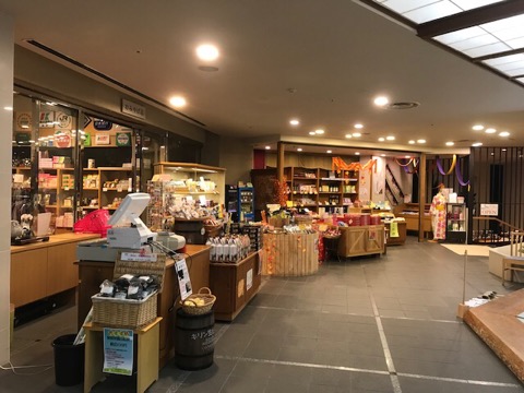 温泉施設と併設されていて、宿泊者は自由に利用できる。お土産屋さんと中庭が楽しそう。