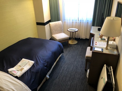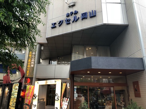 岡山市民会館の近くの交差点のとこのホテル。最寄りは市電の城下。