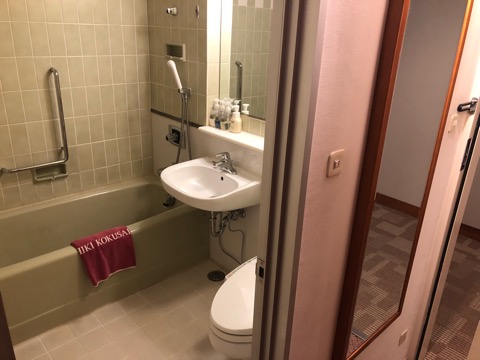 部屋はツインだった。浴室はタイル貼り、ひろびろ。