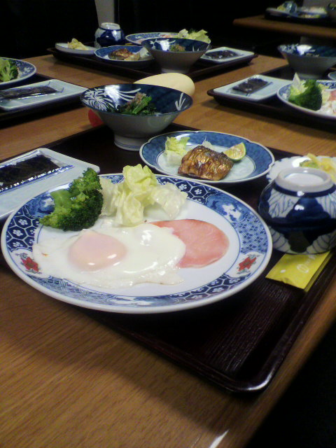 朝食券を貰わなかったし特にアナウンスが無かったのでとりあえず7時に一階に来たら会議室みたいな所に用意があった。