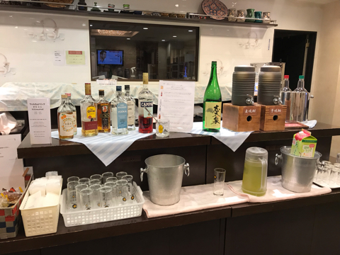 ウェルカムドリンクが充実していて、アルコールもかなりいろんな種類があって楽しそう。