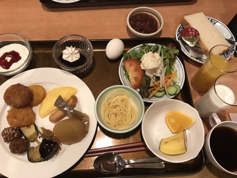 朝食は2階の居酒屋で。私たちの出発が早かったので開店を早めてくれてありがたかった。
