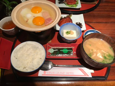 朝食は定食。和洋選べるみたいだけど、私たちは和だけだった。