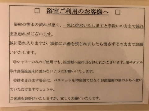 他の人に聞いたら、お風呂は前の人が使ったあとそのままの様子で浴槽に髪の毛やらなにやらが付着していた、という部屋がいっぱいあったみたい。こわい。掃除して。