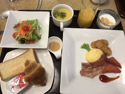朝食9階。毎日全く同じおかずだけど、和洋は自由に選べる。美味しい。