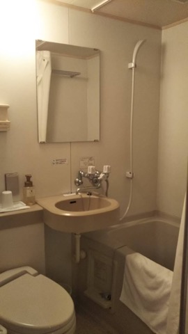 ●ちょっと古いが感じは良い。部屋は少し広め。ベッドはセミダブル。浴室普通。シャンプーとコンディショナーあり。湯沸し器と、沸かしたお湯をキープできるポットが別に用意されている。