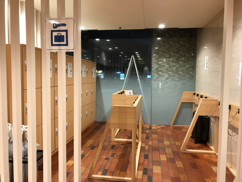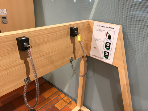 フロント横にコインロッカーとスーツケース用のチェーンがある。便利。