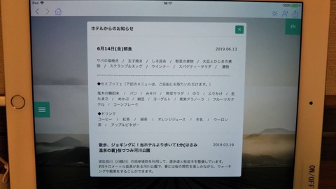 朝食は平日はおかずののったお膳が出てきてご飯、味噌汁、パン等はビュッフェ。