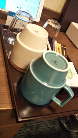 部屋のカップも波佐見焼きで可愛らしい。