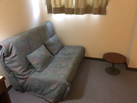 お部屋は広い。ソファーもある。壁はうすい。そしてお部屋に冷蔵庫がなく、自動販売機のところに共用のものが1つ。ビニール袋に部屋番号と名前を書いて入れるシステム。ちなみにエレベーターはない。