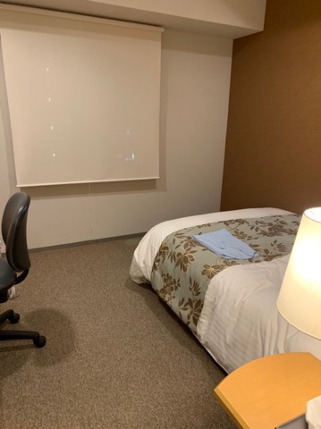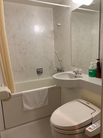 部屋はベッドと机の間が広々している。風呂場も広い印象。良いです。