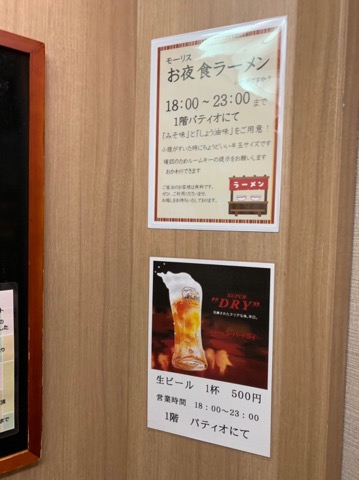 夜は18時〜23時まで朝食会場で無料の夜鳴きそば。味噌味かしょうゆ味が選べる。おかわり自由。
