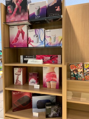 女性はフロントでいろんな美容健康機器が無料で貸してもらえる。