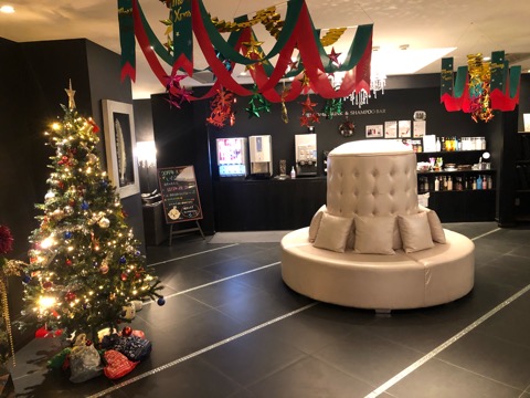ロビーにドリンクバースペースとシャンプーバースペースがあった。