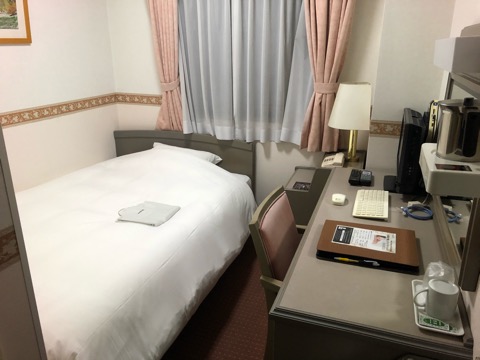 珍しく1階の客室に泊まった。窓側の北枕。