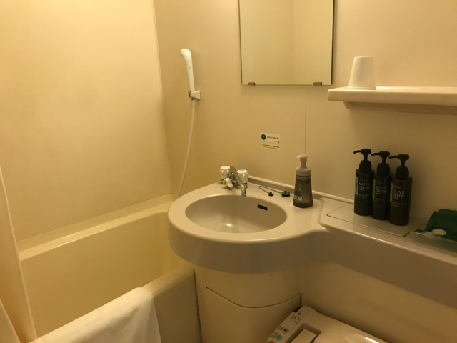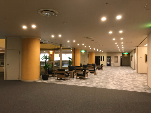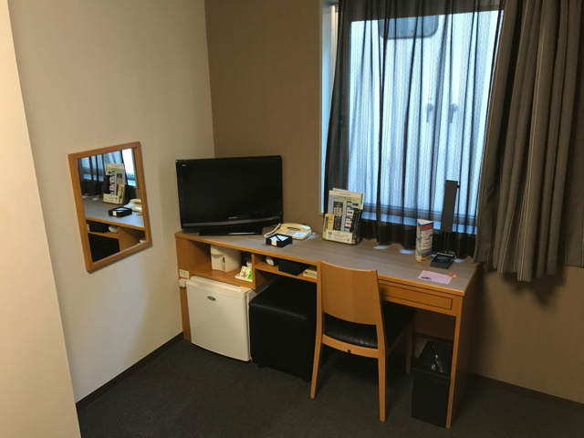 ルートインと思うとだいぶ豪華なロビーで、さすがグランディアという感じだけど部屋は普通。
